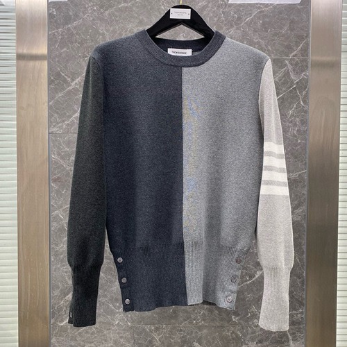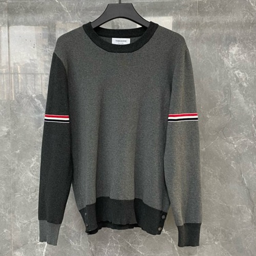Thom Browne 톰브라운 그레이 컬러블록 라운드넥 니트 스웨터