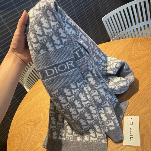 Dior 디올 그레이 자카드 로고 양모 머플러