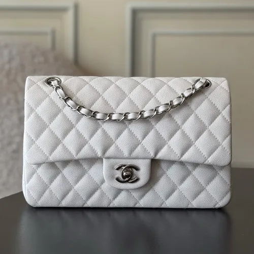 Chanel 샤넬 클래식 플랩백 CF 1112 화이트 Haas 캐비어 카프스킨 (업그레이드 버전)은장