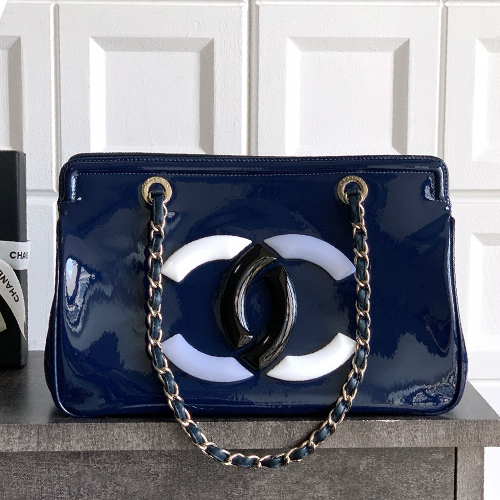 CHANEL 샤넬 CC로고 래커 카우하이드 토트백