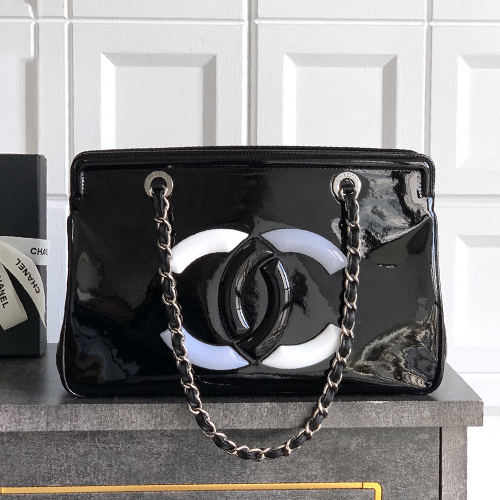 CHANEL 샤넬 CC로고 래커 카우하이드 토트백