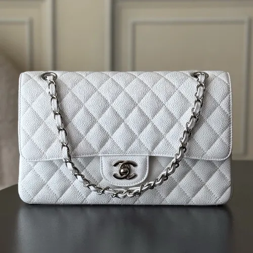 Chanel 샤넬 클래식 플랩백 CF 1112 화이트 Haas 캐비어 카프스킨 (업그레이드 버전)은장