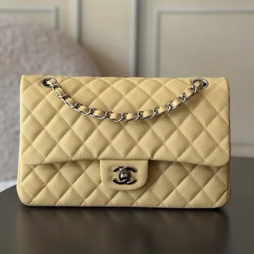 Chanel 샤넬 클래식 플랩백 CF 1112 옐로우 Haas 캐비어 카프스킨 (업그레이드 버전)은장