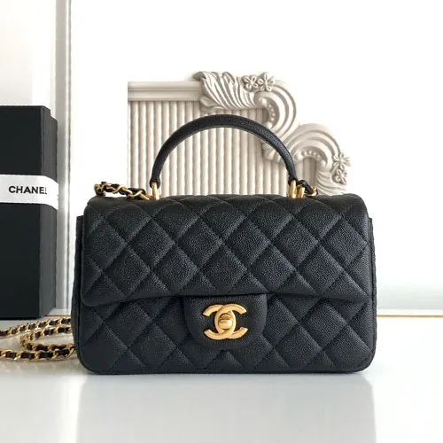 샤넬 CF 뉴미니 캐비어 내장칩 탑핸들 블랙 금장 20CM #AS2431
