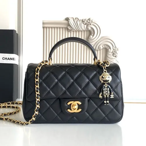 샤넬 CF 뉴미니 램스킨 내장칩 탑핸들 블랙 금장참 20CM #AS2431