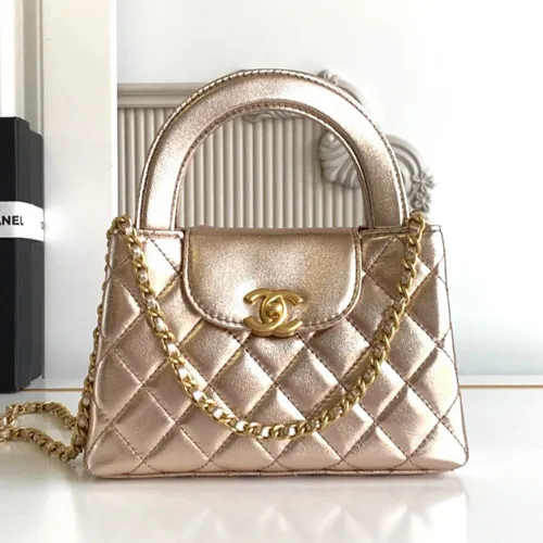 샤넬 실크 램스킨 켈리백 미니탑핸들 메탈브론즈 19cm AS4416