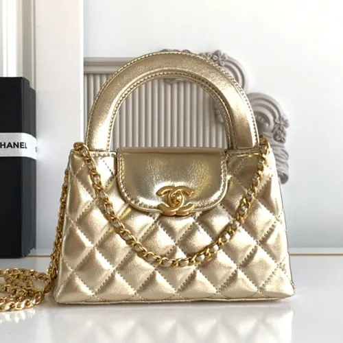 샤넬 실크 램스킨 켈리백 미니탑핸들 메탈골드 19cm AS4416