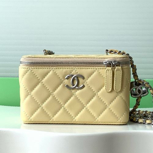 샤넬 25B 신상 코스메틱백으로, 물고기 비늘 질감의 어피 가죽 소재가 매우 정교하고 고급스럽습니다. 고급스러운 진주 로고와 더블 C 조절형 잠금 장치가 포인트로, 손에 들었을 때도 아름답고 세련된 인상을 줍니다. 어떤 의상과도 잘 어울리며, 패셔너블한 연출이 가능합니다.