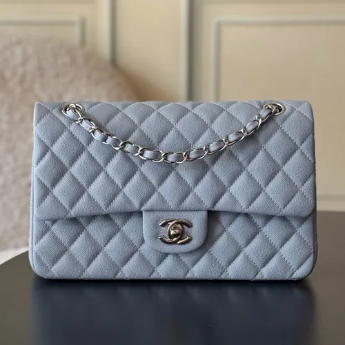 Chanel 샤넬 클래식 플랩백 CF 1112 스모그블루 Haas 캐비어 카프스킨 (업그레이드 버전)은장
