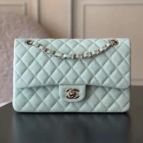 Chanel 샤넬 클래식 플랩백 CF 1112 파스텔민트 Haas 캐비어 카프스킨 (업그레이드 버전)금장