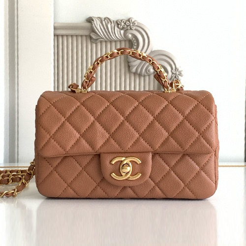 이번 시즌 신상인 CHANEL 25B 소가죽 손잡이 CF 미니백으로, 클래식한 체인 가죽 손잡이가 특징입니다. 전체적으로 세련되고 우아한 디자인이며, 더블 C 로고의 고급스러운 금장 장식과 손잡이가 포인트입니다. 소가죽 소재의 질감이 부드럽고 내구성이 뛰어나며, 크기가 작아도 수납공간이 효율적으로 구성되어 있습니다. 어떤 스타일에도 잘 어울리는 사랑스러운 미니백으로, 계절과 상관없이 활용도가 높습니다.