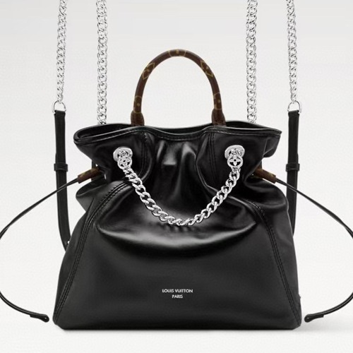 루이 비통의 오프 듀티 바이브(Off Duty Vibe) 백팩은 부드러운 양가죽으로 제작되어 편안하고 캐주얼한 실루엣을 자랑합니다. 블랙 컬러의 유연한 가죽과 실버 톤 체인 스트랩이 조화를 이루며, 상단 핸들은 루이 비통의 시그니처 모노그램 캔버스 디테일로 감싸져 있어 세련된 포인트를 더합니다. 드로스트링 잠금장치로 내부 수납품을 안전하게 보관할 수 있습니다.