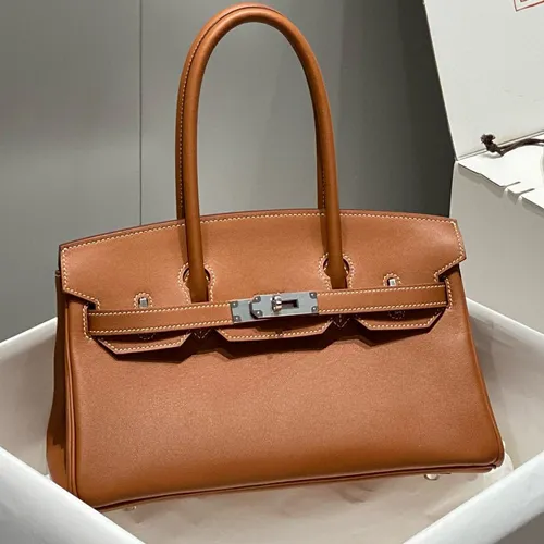전통 버킨보다 높이를 줄이고, 가로를 늘린 디자인으로 숄더 착용이 가능하며, 보다 실용적이고 모던한 분위기를 제공합니다.