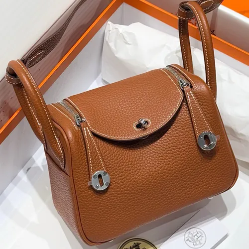 Hermes 에르메스 미니 린디 19 클레망스가죽 다크 오렌지브라운 은장