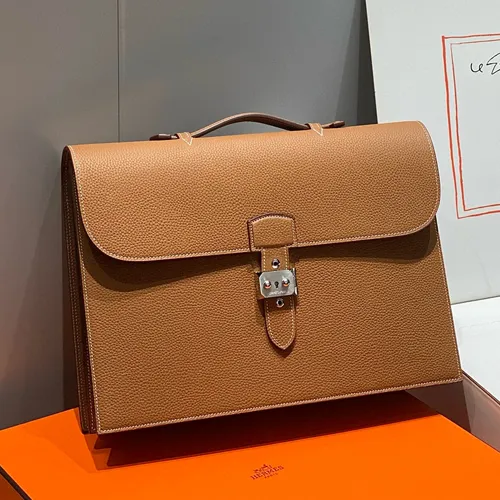 Hermes 에르메스 삭 아 데페슈 브리프케이 브라운 38CM