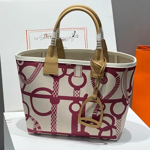 Hermes 에르메스 스티플 토트 쇼퍼백 캔버스 & 레더 28CM 버건디