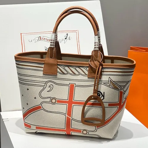 Hermes 에르메스 스티플 토트 쇼퍼백 캔버스 & 레더 28CM 오렌지