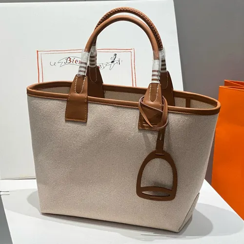 Hermes 에르메스 스티플 토트 쇼퍼백 캔버스 & 레더 28CM 무지 베이지