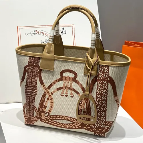Hermes 에르메스 스티플 토트 쇼퍼백 캔버스 & 레더 28CM 브라운