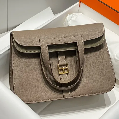 Hermes 에르메스 Halzan 토고가죽 할잔 25 브라운카키 금장