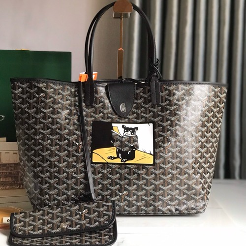 이 제품은 Goyard의 상징적인 ‘Saint Louis PM’ 모델로, 경쾌하고 넉넉한 수납력을 갖추면서도 부드럽고 가벼운 착용감을 제공합니다. 본 문구에는 “클래식 패턴 표면에 독특한 Hulot 그림이 더해져 재미와 귀여움을 동시에 담았으며, 대용량이면서 동전 지갑 및 가방 펜던트를 포함해 안전성과 장식성 모두 충족한다”고 설명되어 있습니다. 입구 폭 약 47 cm, 바닥 길이 34 cm, 바닥폭 14 cm, 높이 27 cm로 안내되어 일상 또는 여행용으로 활용하기 적합합니다.