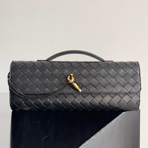 Bottega Veneta Andiamo 이브닝 클러치는 브랜드의 시그니처 인트레치아토 위빙(Intercciato Weaving) 디자인으로 제작된 고급 가죽 클러치백입니다.