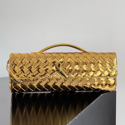 Bottega Veneta Andiamo 이브닝 클러치는 브랜드의 시그니처 인트레치아토 위빙(Intercciato Weaving) 디자인으로 제작된 고급 가죽 클러치백입니다.