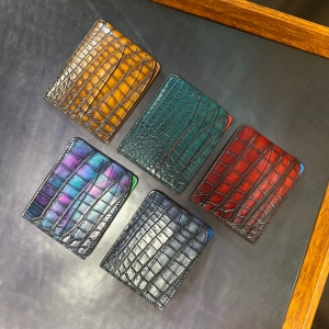 B社 벨루티 2023 뱀부 테트리스 엘리게이터 레더 카드 홀더 11cm (5색)