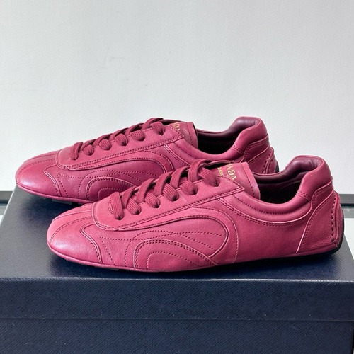 Prada Montecarlo 남성 로우컷 스니커즈는 고급 나파 가죽으로 제작되어 부드럽고 내구성이 뛰어난 제품입니다. 레이싱 슈즈에서 영감을 받은 유선형 디자인과 낮은 프로파일의 실루엣이 특징이며, 복고적이면서도 현대적인 감각을 살렸습니다.