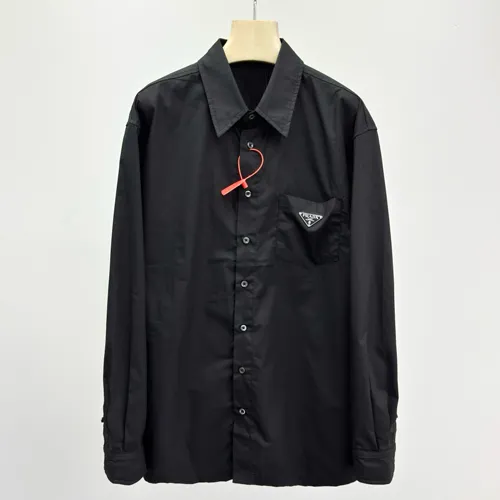 이 프라다 셔츠는 현대적인 감각을 더해 클래식 남성 셔츠를 새롭게 해석한 디자인입니다. 심플한 라인에 프라다의 상징적인 에나멜 코팅 메탈 삼각 로고가 포인트로 더해져 고급스러운 매력을 강조합니다.