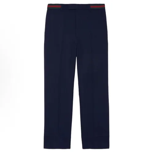 구찌의 클래식한 스트레이트 핏 팬츠로, 중간 허리 라인과 여유 있는 실루엣이 특징입니다. 베이지 컬러 바디에 허리 뒷부분의 시그니처 그린&레드 웹밴드 디테일이 포인트를 더해 세련된 무드를 완성합니다. 고급 코튼 혼방 원단으로 제작되어 편안한 착용감을 제공하며, 데일리 캐주얼 및 포멀한 스타일링에 모두 활용 가능한 팬츠입니다.