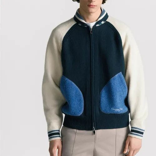 Dior 스쿨룩 니트 자켓 남성 블루 앤 화이트 (92254357)