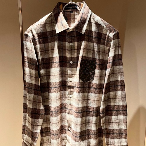 제품명 Louis Vuitton 루이비통 2025 FW 체크 셔츠 가죽 포켓 로고 패치 남녀공용 셔츠