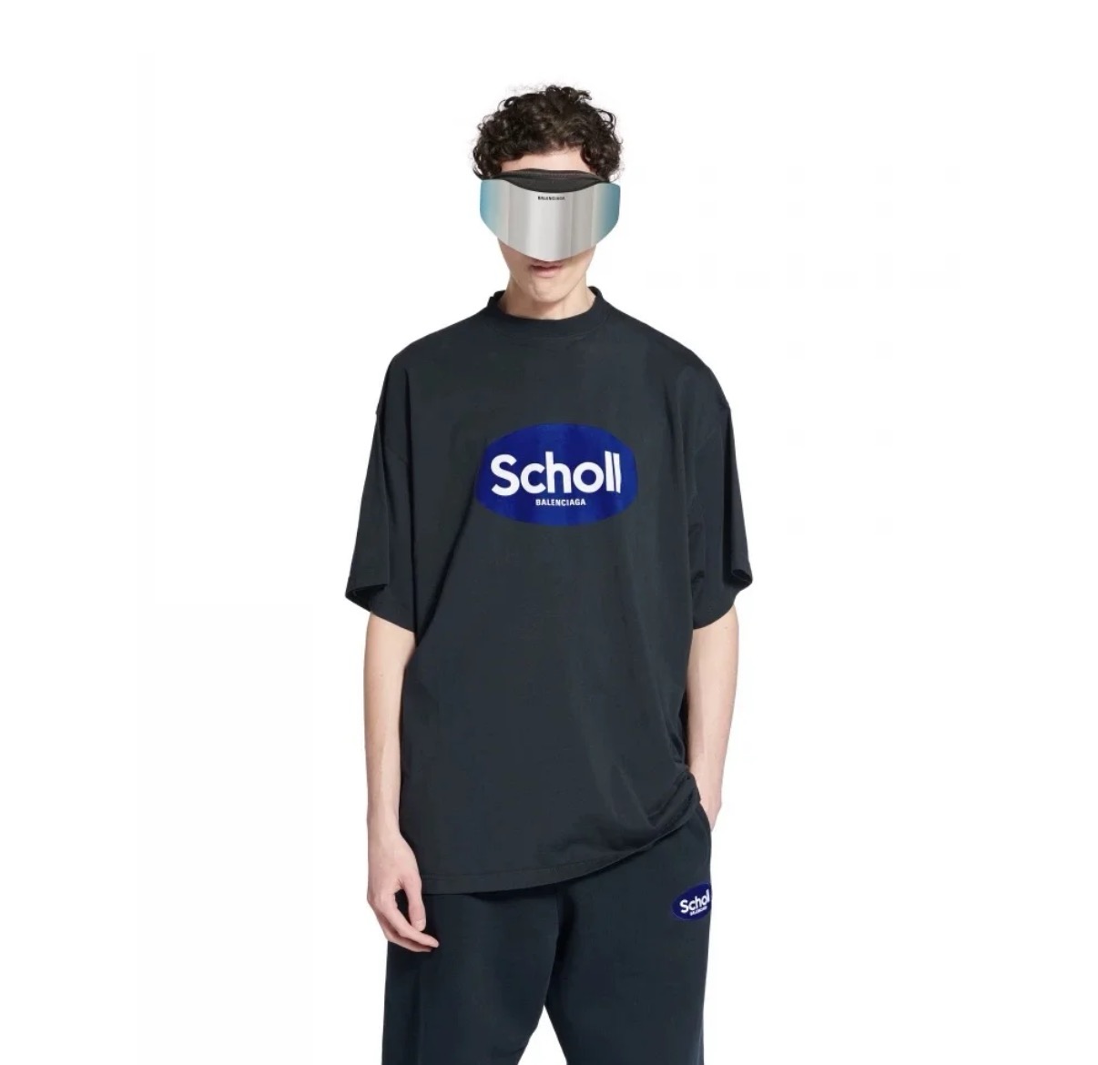 앞면 및 뒷면 모두에 Scholl BALENCIAGA 로고 프린트