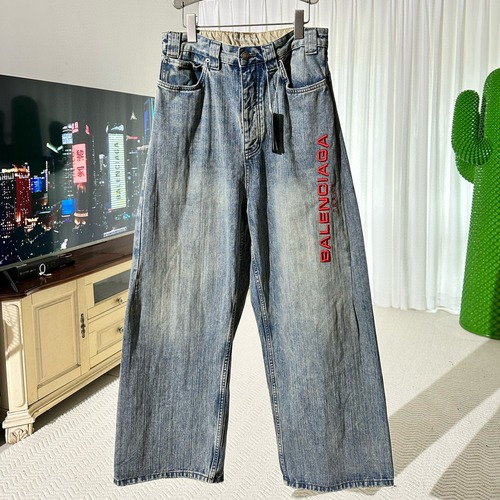 25FW 발렌시아가 런웨이 버전 청바지로, 6×7 전대나무 정제 면소재의 데님 원단을 사용했습니다. 중량은 14온스로 두께감 있고, 손감과 색조 모두 고급스럽습니다. 모든 금속 부자재는 이중소재 공법으로 제작되었으며, 내부는 보라색 구리, 외부는 전기도금 복고 총색 처리되어 있습니다. 전체적으로 빈티지 블랙 워싱 효과를 구현했으며, 고난도의 워싱 공정을 통해 완성된 제품입니다. 여러 번의 샘플링을 거쳐 완성된 최종 버전으로, 착용 시 자연스러운 질감과 원본에 가까운 효과를 느낄 수 있습니다.