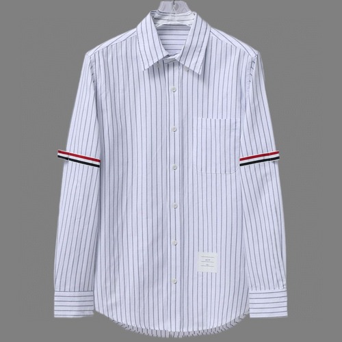 톰브라운의 스트라이프 소매 셔츠입니다. 소매 부분에 톰브라운 특유의 삼색 스트라이프 디테일이 돋보입니다. 깔끔한 스트라이프 패턴으로 다양한 스타일에 매치하기 용이합니다.