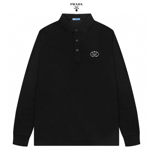 프라다 남성 코튼 롱슬리브 폴로 셔츠입니다. 가볍고 우아한 라인을 강조하며, 가슴 부분의 상징적인 로고가 특징입니다. 섬세하고 세련된 디자인으로, 비즈니스 캐주얼룩에 적합합니다.