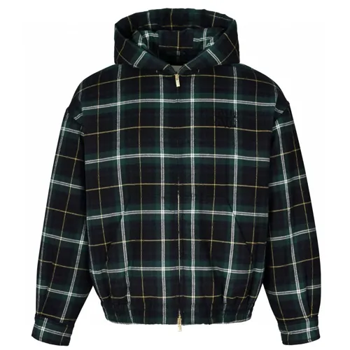 Miu Miu 미우미우 25FW 그린 체크 패턴 후드 패딩 점퍼