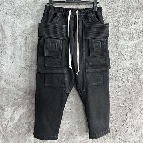 생각보다 실물이 훨씬 멋있어요. 릭오웬스 특유의 와이드한 실루엣이랑 포켓 디테일이 확 눈에 띄네요ㅎㅎ 워싱도 과하지 않고 은은해서 코디하기 쉽습니다. 7부 기장이라 여름엔 시원하고, 조거처럼 밑단도 깔끔해요. 다만 허리 스트링이 좀 길어서 한 번 묶어줘야 하는게 살짝 아쉽네요 ^^ 그래도 이 가격에 퀄리티 만족합니다~