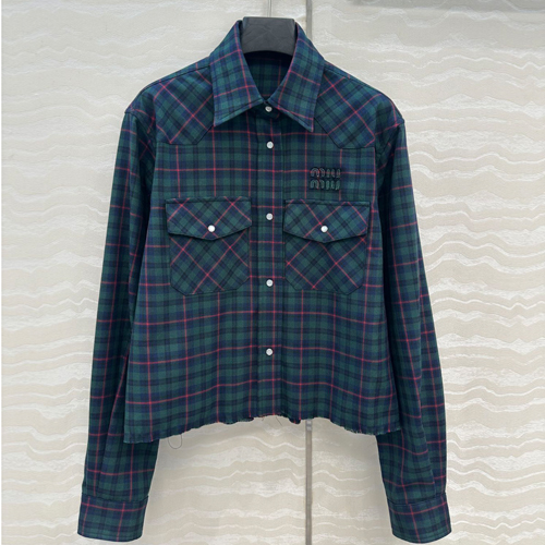 고급스러운 원단과 섬세한 자수 로고가 돋보이는 미우미우 체크 패턴 셔츠입니다. 트렌디한 디자인으로 젊고 감각적인 스타일을 연출할 수 있습니다.