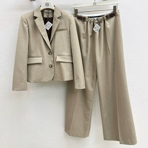 Loe 25Ss 시리즈, 초가을 신상 하이엔드 여성 수트 세트. 투벨트 가죽 장식이 들어간 숏 블레이저 자켓과 스트레이트 슬랙스 구성으로, 고급스러운 슬랜트 텍스처 원단 사용. 상의는 허리라인이 슬림하게 연출되며 어깨라인이 자연스러워 단정하면서도 세련된 분위기를 강조. 전체적으로 슬림하고 쿨한 실루엣으로 체형 보정 효과가 뛰어나며, 원단의 밀도감과 광택이 고급스러운 느낌을 줌. 두 가지 색상으로 구성되어 포멀룩부터 세미 캐주얼까지 다양하게 매치 가능.