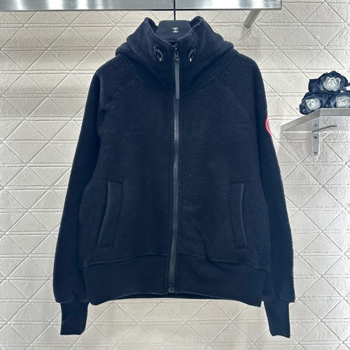 캐나다 구스의 2025년 신상 여성 후드 집업 재킷입니다. YB에서 수입한 캐시미어 소재를 사용하여 부드럽고 편안한 착용감을 제공합니다.