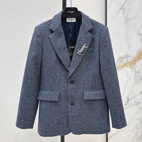 Saint Laurent 생로랑 신상 클래식 로고 브로치 장식 양모 블레이저 자켓