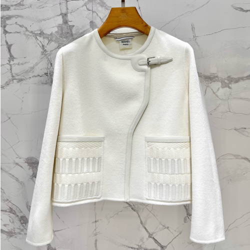 HERMES 에르메스 마샤 자수 라운드넥 양면 양모 쇼트 자켓