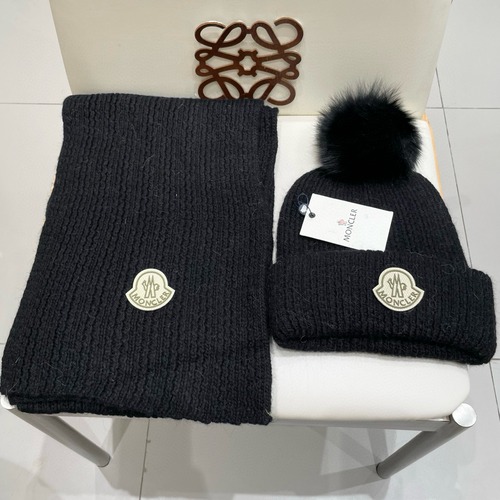 Moncler 몽클레어 양모세트 모자 - 여우털 방울 포함 겨울 머플러 세트
