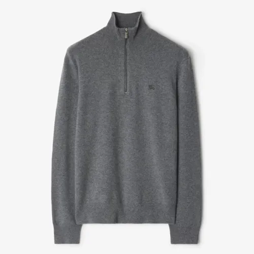 버버리의 울 혼방 하프집업 니트 스웨터로, 가볍고 따뜻한 울 혼방 원단으로 제작되었습니다. 심플한 니트 짜임과 하프 집업 디자인으로 세련된 실루엣을 완성하며,