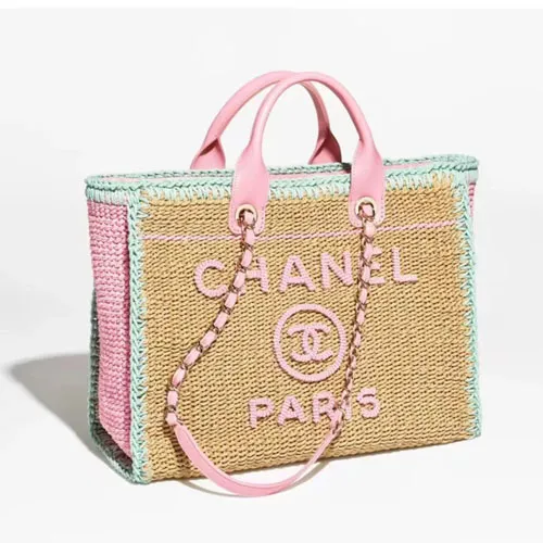샤넬 코튼 크로셰 미듐 도빌 토트백 32CM 핑크 #1602969