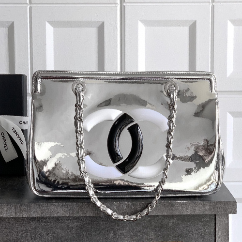 CHANEL 샤넬 CC로고 래커 카우하이드 토트백