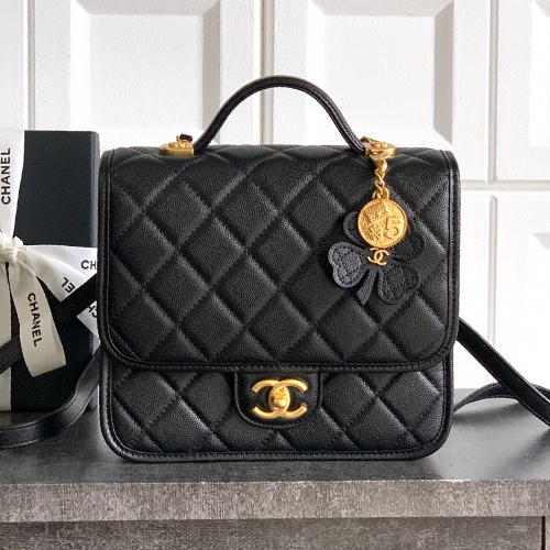 Chanel 샤넬 25B 사잇클로버 참 블랙 더블 백팩