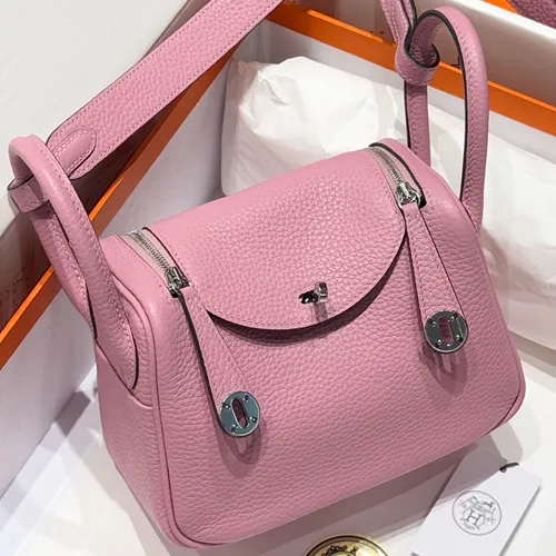 Hermes 에르메스 미니 린디 19 클레망스가죽 핑크 은장
